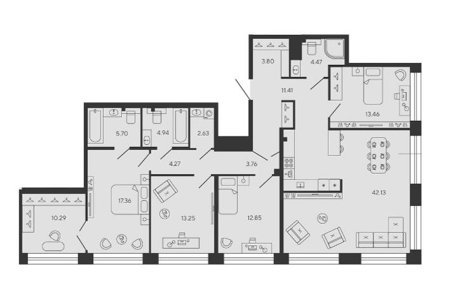 80% квартир - видовые, панорама открывается на финский залив и набережную. На верхних этажах башен PLATINA и TITAN располагаются пентхаусы с потолками до 7м².