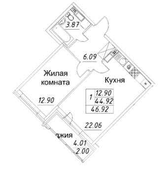 Площадь от 43.15 м2