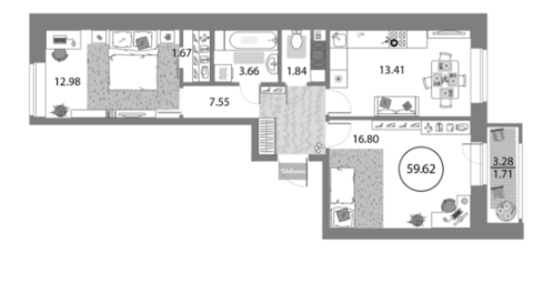Площадь от 59.62 м2