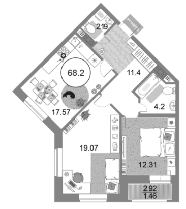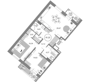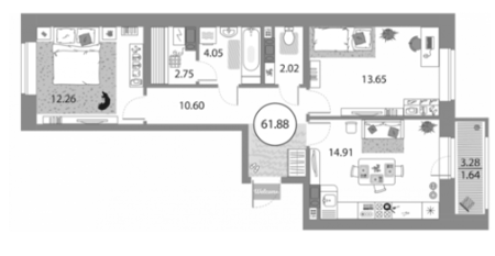Площадь от 61.8 м2