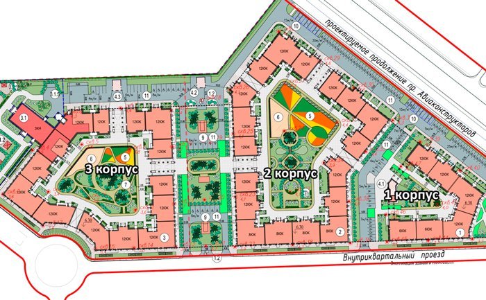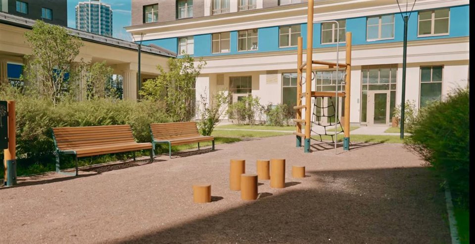 Во дворах спроектированы уникальные ландшафтные решения: один двор оформлен в теме леса, другой в теме поля, третий - луга.
