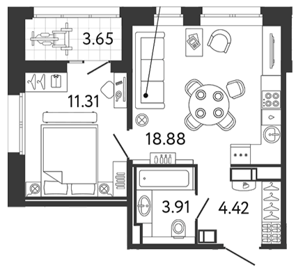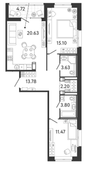 Площадь от 37.78 м2