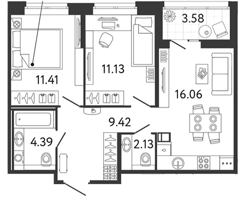 Площадь от 34.16 м2