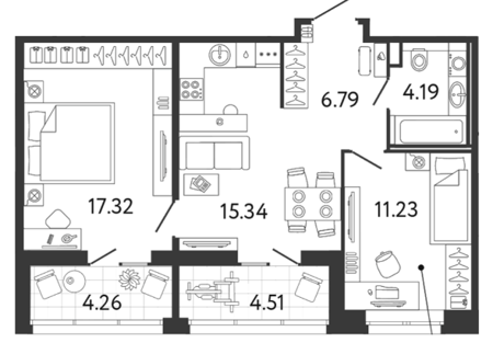 Площадь от 27.17 м2