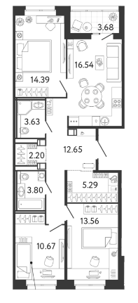 Площадь от 53.67 м2