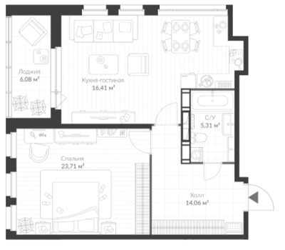 Площадь от 42.05 м2