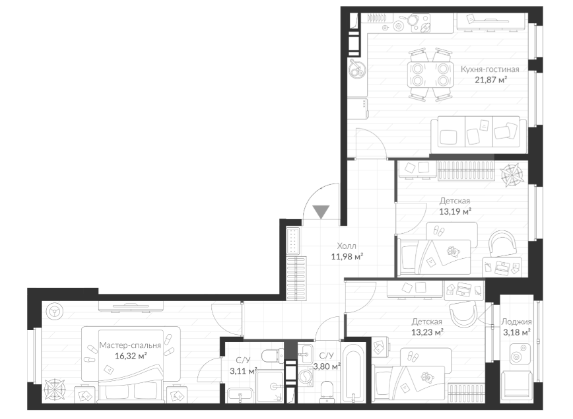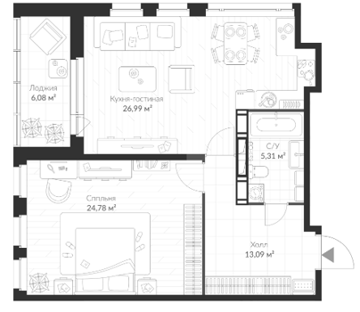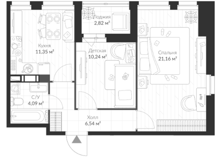 Площадь от 54.79 м2