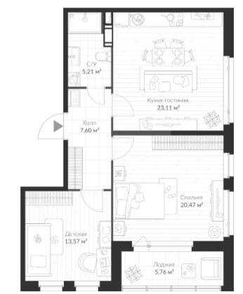 Площадь от 23.62 м2