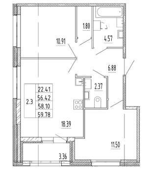 Площадь от 56.37 м2