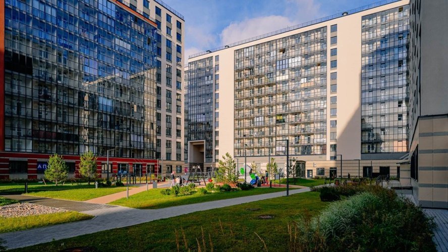 Во дворах — без машин, и это действительно заметно: дети спокойно бегают, родители не переживают. Всё красиво и удобно: игровые зоны, спортивные площадки, зелёные газоны, деревья, скамейки. Есть места, где просто посидеть, и где позаниматься спортом. Всё освещается по вечерам, атмосфера во дворе — как в хорошем районе европейского города.