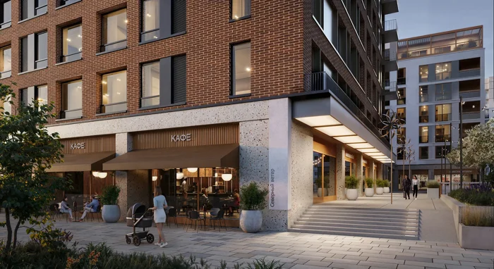 Застройка переменной этажности: от таунхаусов с индивидуальными входами и гаражами до башен-доминант с видовыми квартирами. В центре квартала — уютные урбан-виллы и приватные зоны отдыха. Всё окружено зеленью и авторским ландшафтом
