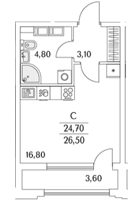 Площадь от 31 м2