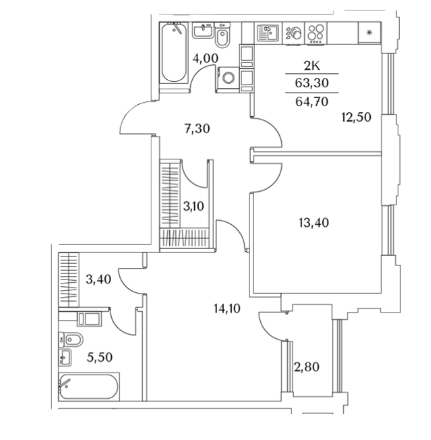 Площадь от 61 м2